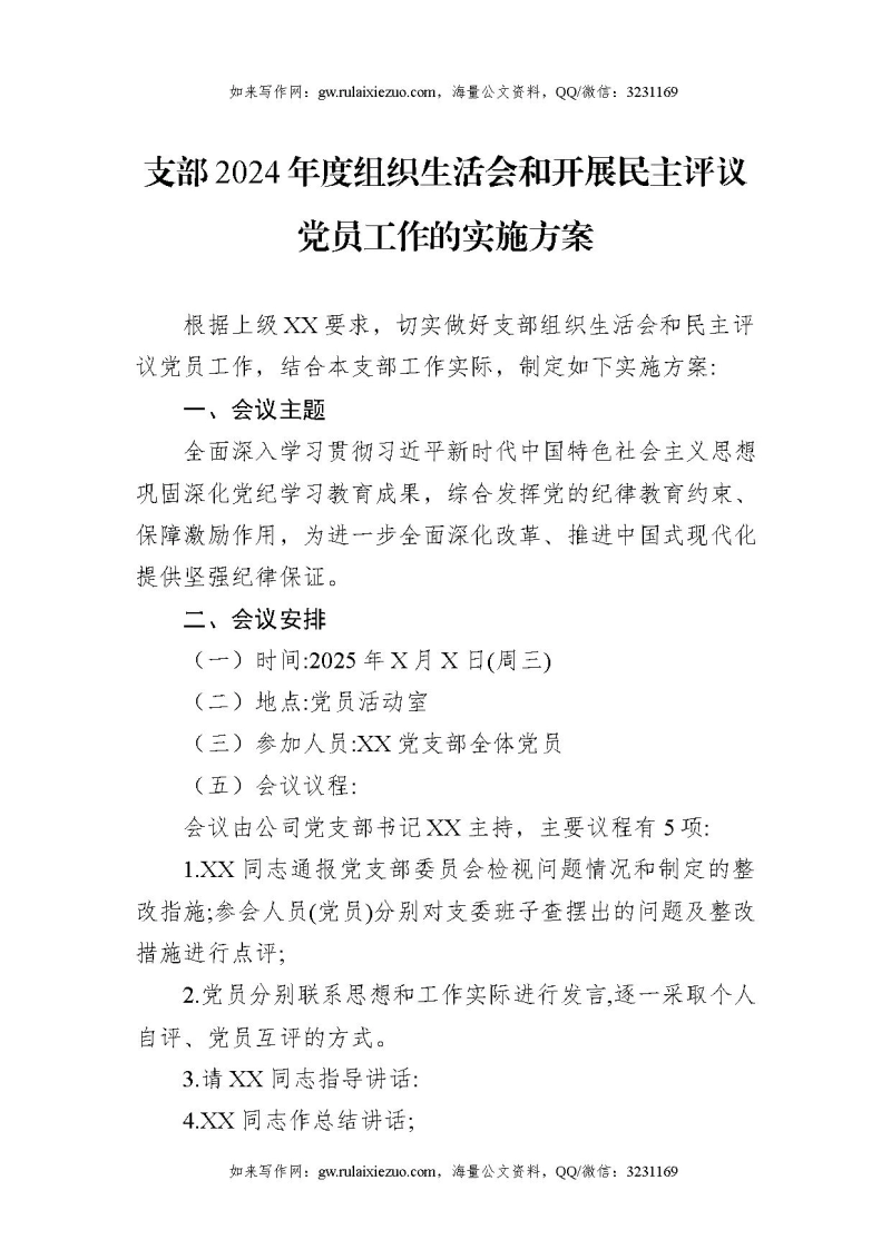 首页组织生活会支部2024年度组织生活会和开展民主评议党员工作的实施方案