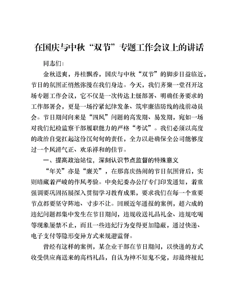 首页领导讲话在国庆与中秋“双节”专题工作会议上的讲话
