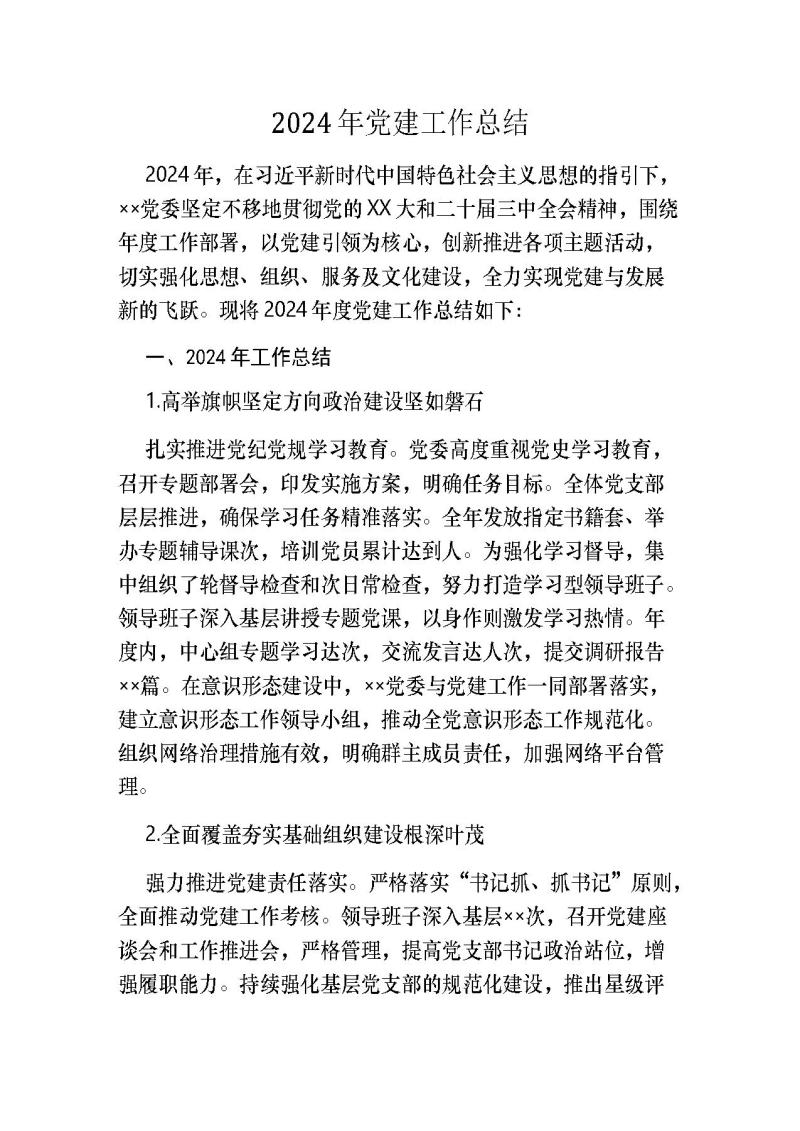 - 2024-10-01 00:002024年党建工作总结(2)