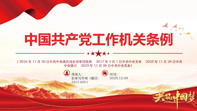 党课讲稿 PPT课件:《中国共产党工作机关条例》