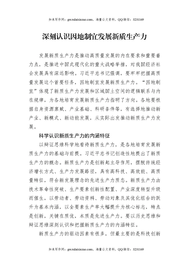 深刻认识因地制宜发展新质生产力